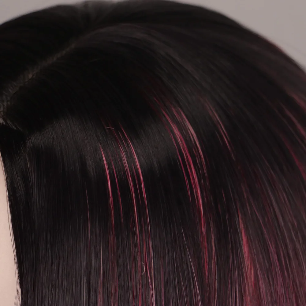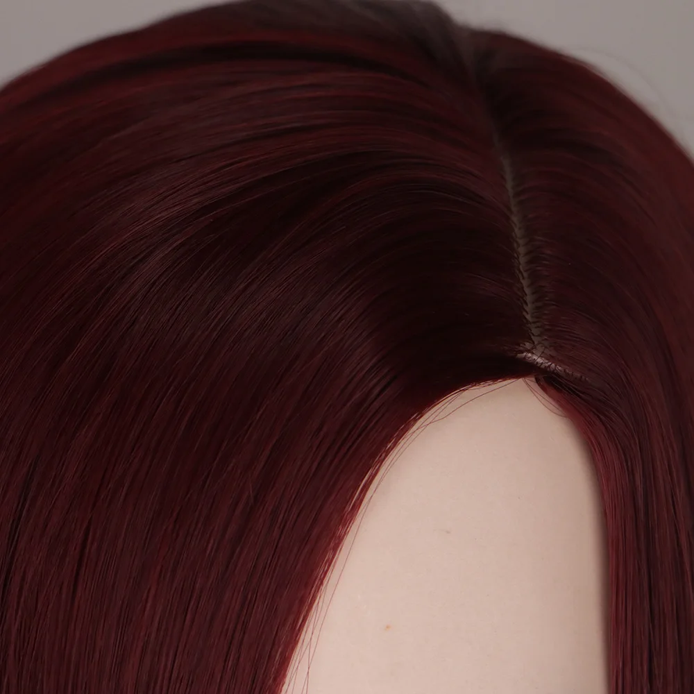 Short Red Wine Brown Synthetic Hair Wigs for Black Women Female Haircut Puffy Straight Natural wig