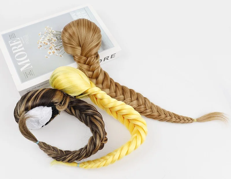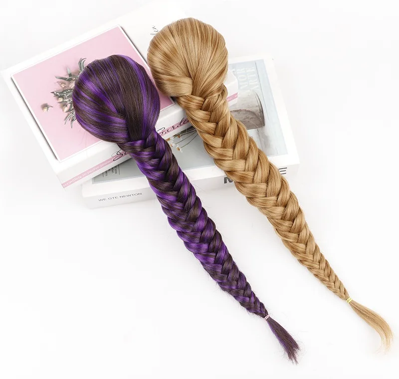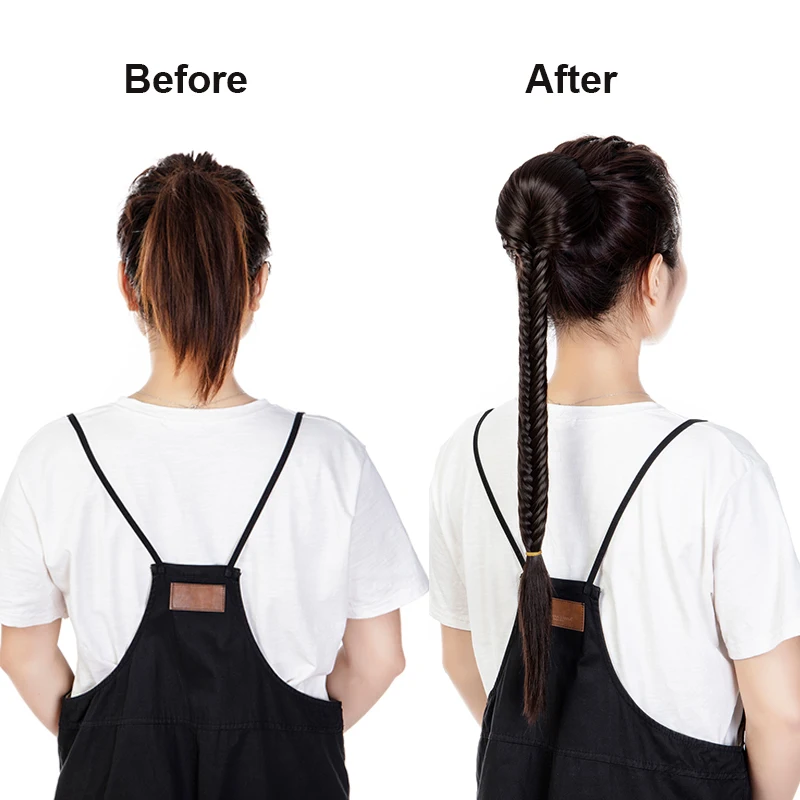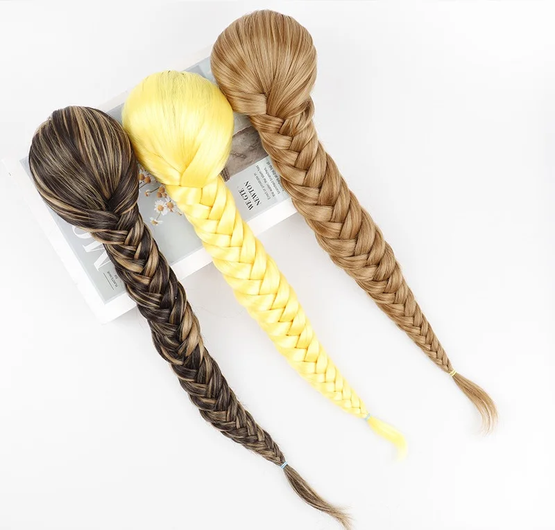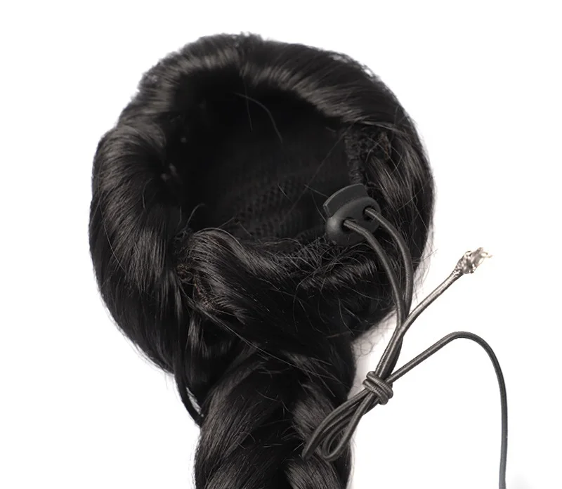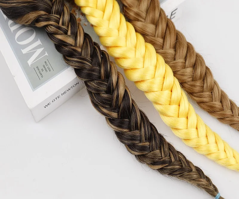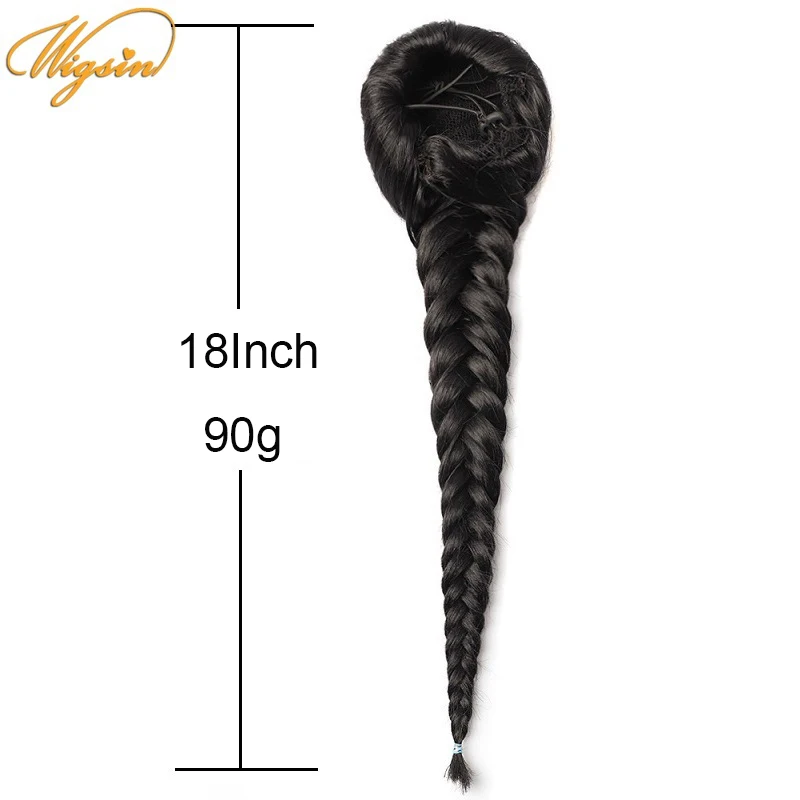WIGSIN Synthetic Braid Plaited Fishbone Drawstring Ponytail Clip in Hair Extension Black Blonde Fishtail Hairpiece for Women